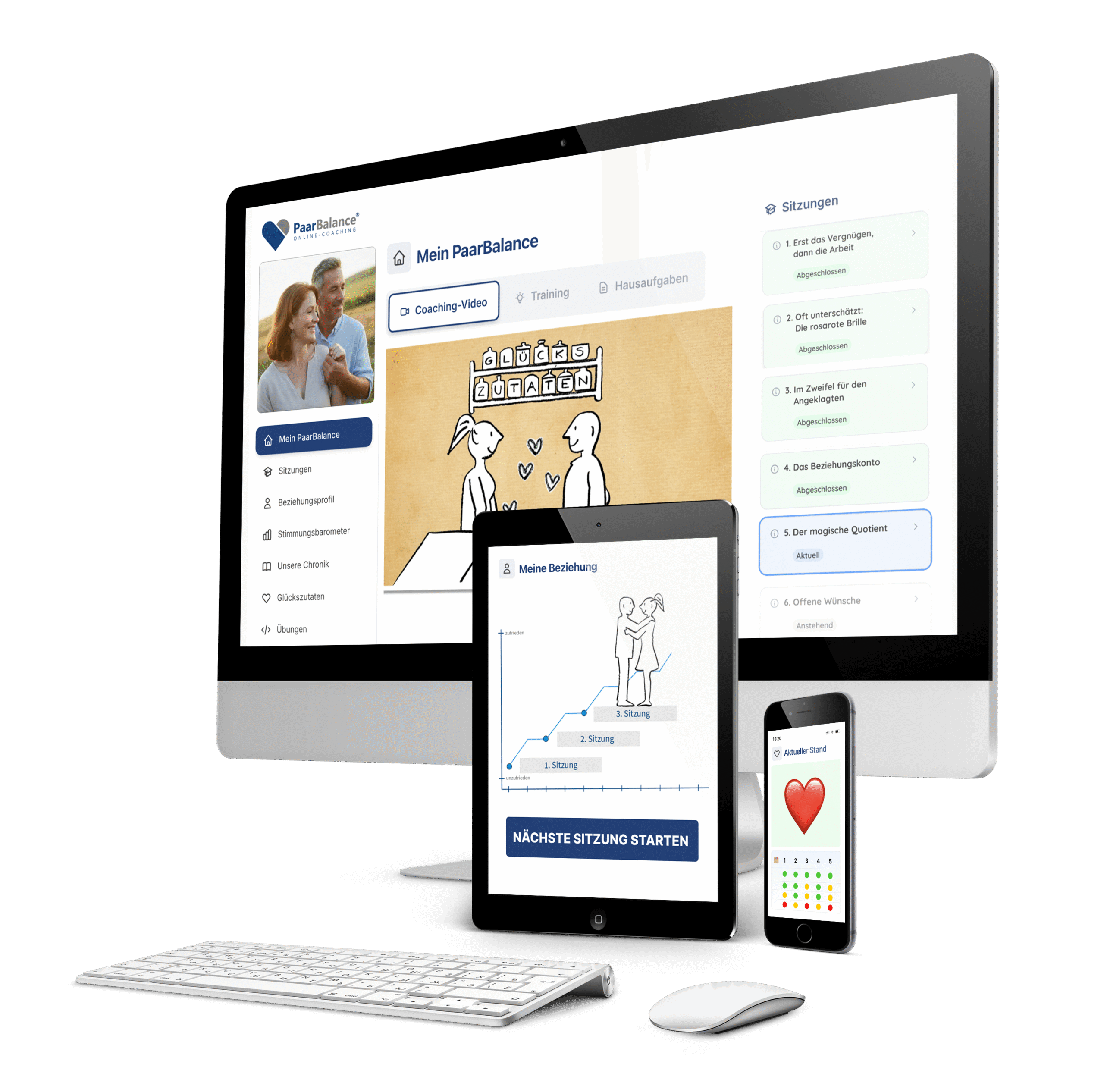 Machen Sie den ersten Schritt und starten Sie am besten noch heute mit dem PaarBalance Online-Coaching. Für mehr Geborgenheit und Wir-Gefühl in Ihrer Beziehung.