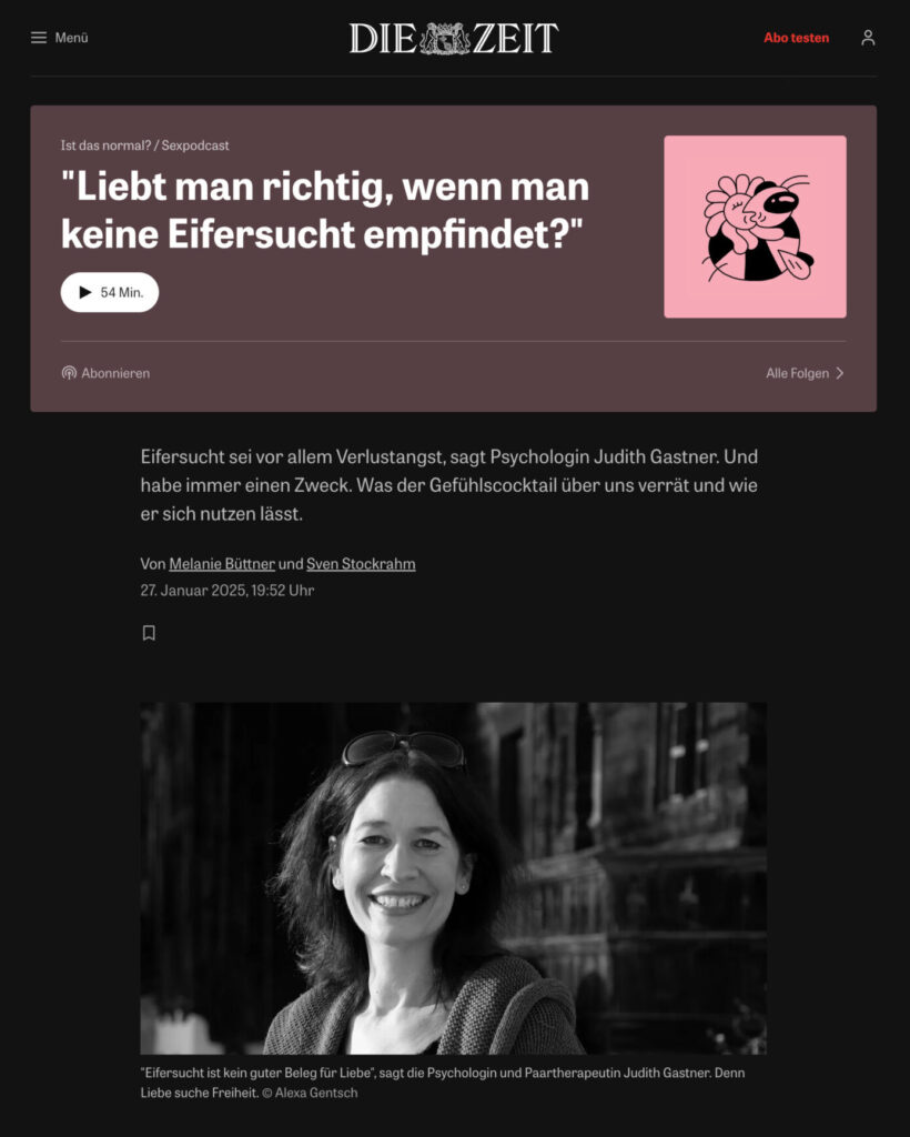 Dr. Judith Gastner ist Diplom-Psychologin, Psychotherapeutin, Paartherapeutin und Pädagogin.