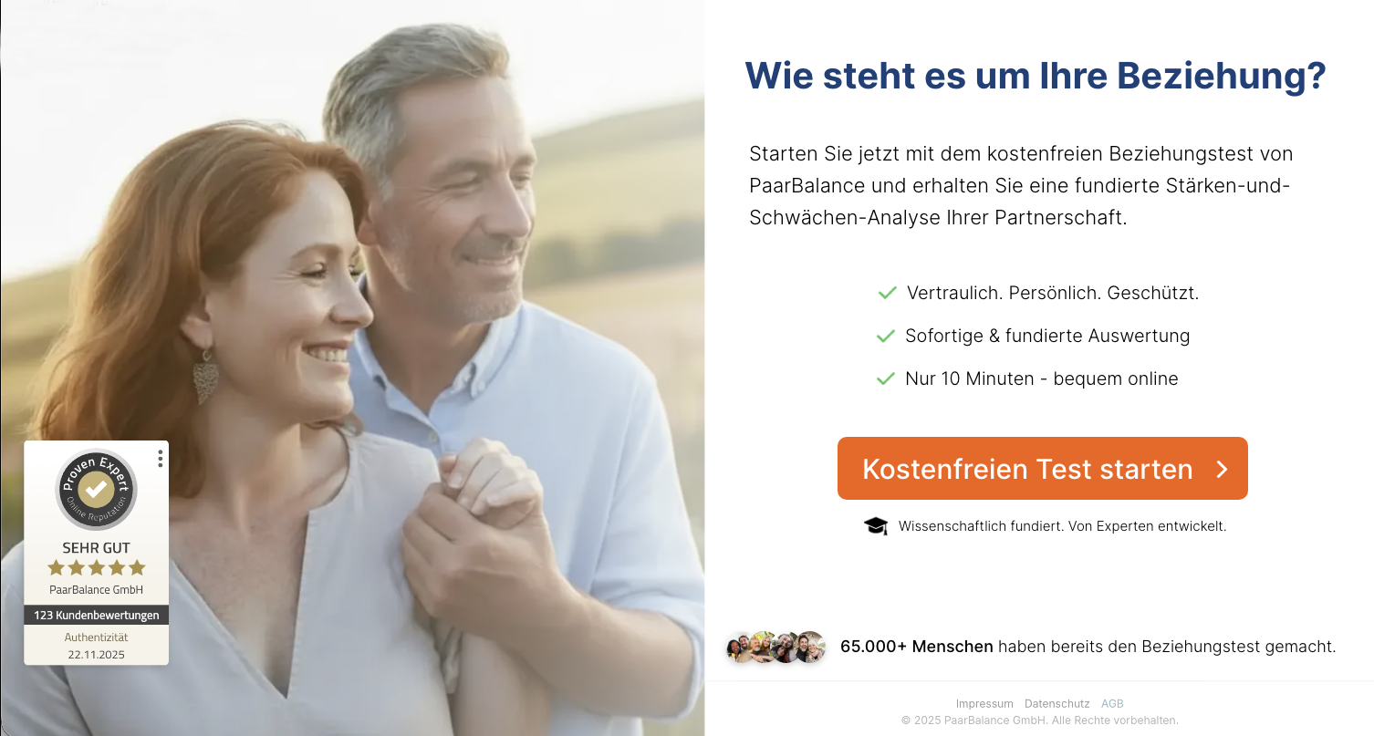PaarBalance.de bietet evidenzbasiertes Online-Beziehungscoaching. Das weltweit einzigartige, interaktive Programm ist auf den einzelnen Partner zugeschnitten. Es richtet sich sowohl an Menschen in länger andauernden Partnerschaften wie auch an Personen, die am Anfang einer neuen Beziehung stehen.