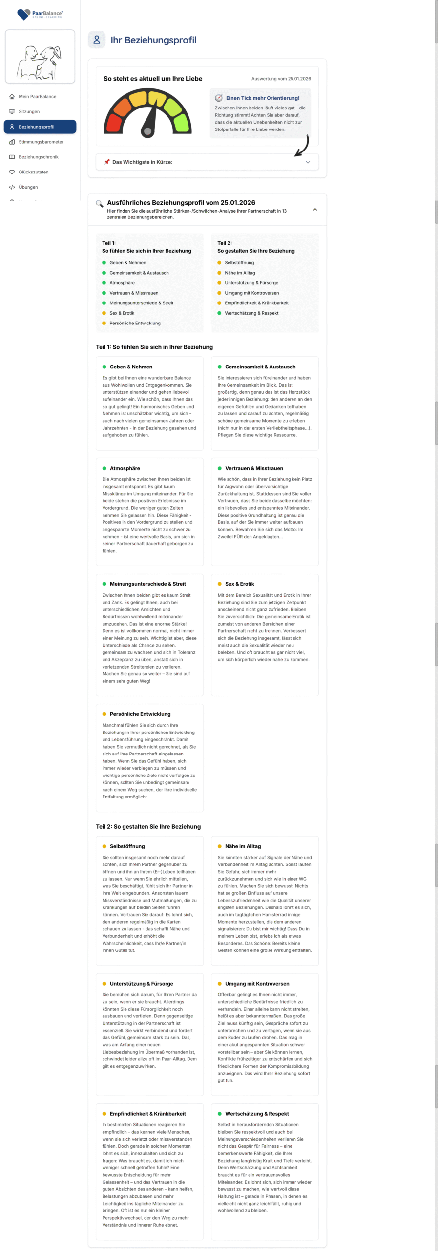 In welchen Bereichen Ihrer Partnerschaft haben Sie besondere Stärken? Wo gibt es Handlungsbedarf? Wie lässt sich Ihre Lebensqualität sofort verbessern?